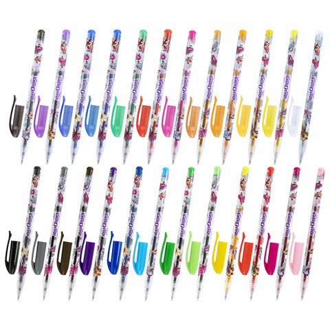 Ручки гелевые НАБОР 24 ЦВЕТА, ЮНЛАНДИЯ, корпус с печатью, узел 1 мм, линия письма 0,5 мм, 143821