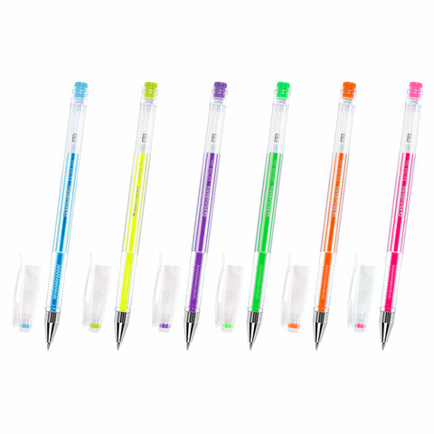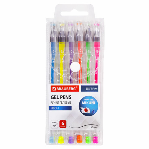 Ручки гелевые НЕОН BRAUBERG "EXTRA", НАБОР 6 ЦВЕТОВ, узел 0,7 мм, линия 0,5 мм, 143911