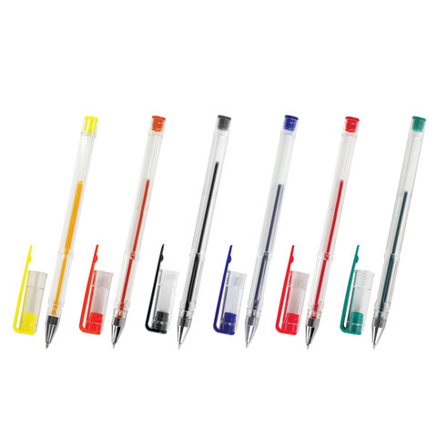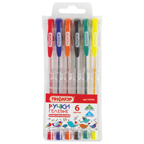 Ручки гелевые ПИФАГОР, НАБОР 6 ЦВЕТОВ, корпус прозрачный, узел 0,5 мм, линия письма 0,35 мм, 142793