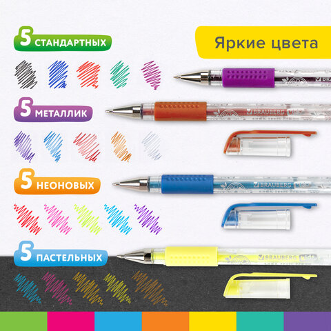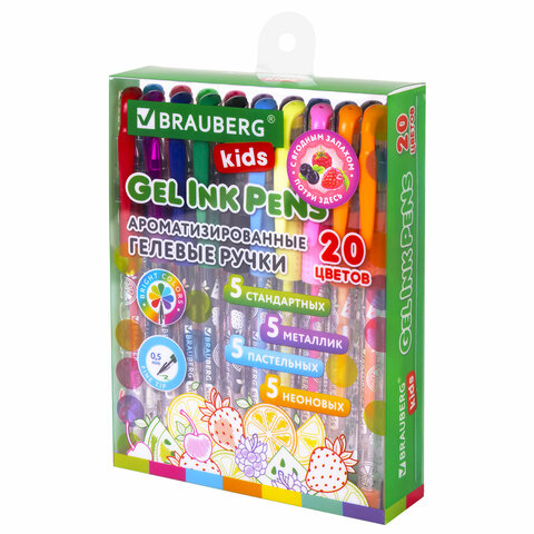 Ручки гелевые с грипом АРОМАТИЗИРОВАННЫЕ, НАБОР 20 ЦВЕТОВ, "FRUITS", линия письма 0,5 мм, BRAUBERG KIDS, 143824