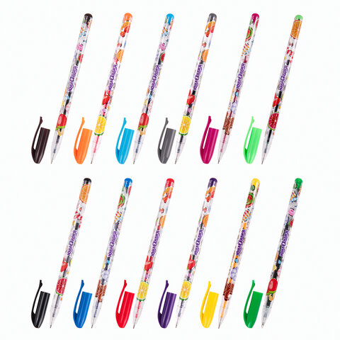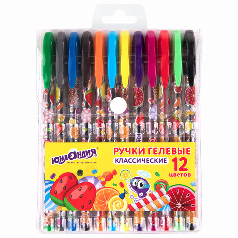 Ручки гелевые ЮНЛАНДИЯ, НАБОР 12 ЦВЕТОВ, корпус с печатью, узел 0,5 мм, линия письма 0,35 мм, 142800