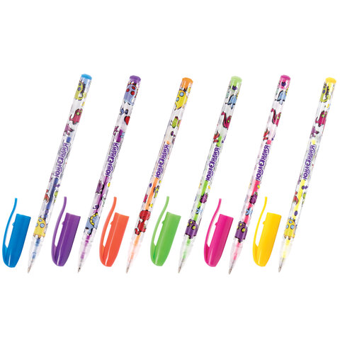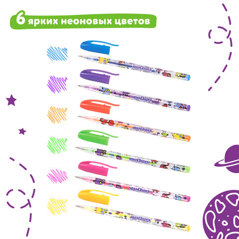 Ручки гелевые ЮНЛАНДИЯ, НАБОР 6 ЦВЕТОВ, НЕОН, корпус с печатью, узел 0,7 мм, линия письма 0,5 мм, 142804