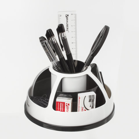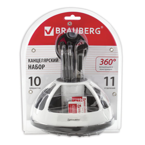 Канцелярский набор BRAUBERG "ULTRA", 10 предметов, вращающаяся конструкция, черно-белый, 236954