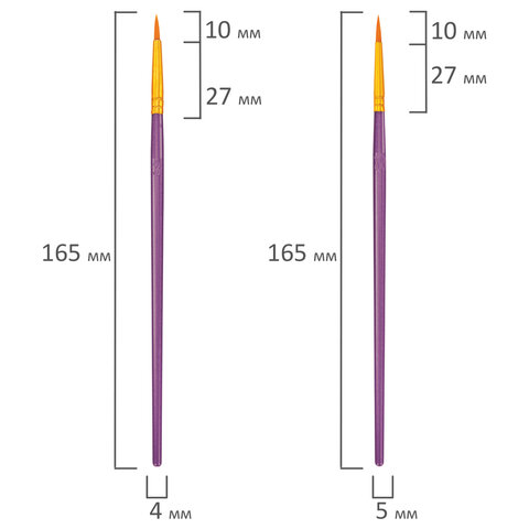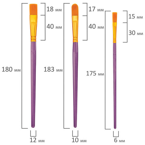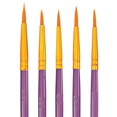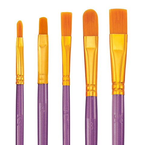 Кисти набор 10 шт., синтетика, фиолетовые, № 2/0-8 (Круглые; Овальные; Плоские; Лайнеры), WBZ (ВБЗ), 201086