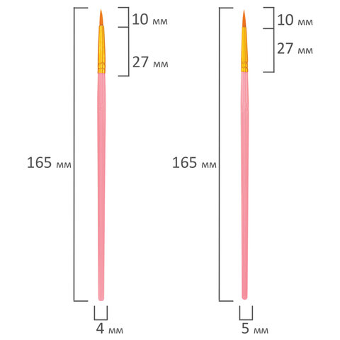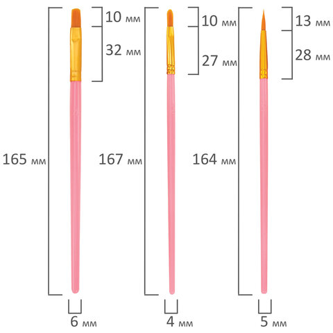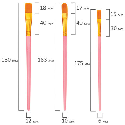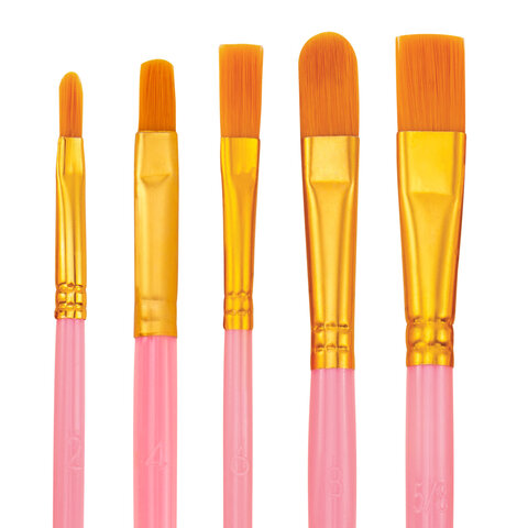 Кисти набор 10 шт., синтетика, розовые, № 2/0-8 (Круглые; Овальные; Плоские; Лайнеры), WBZ (ВБЗ), 201088