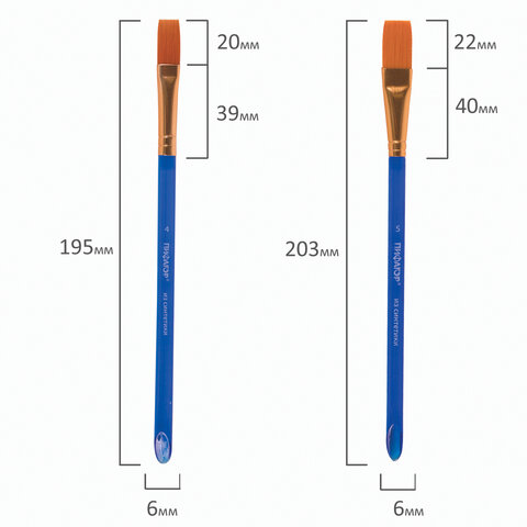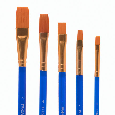 Кисти ПИФАГОР, набор 5 шт. (СИНТЕТИКА: плоские № 1, 2, 3, 4, 5), пакет с европодвесом, 200888