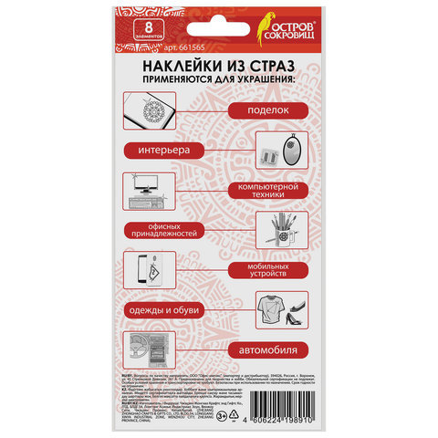 С помощью наклеек из страз ОСТРОВ СОКРОВИЩ можно декорировать поделки, детали интерьера, одежду и гаджеты, реализовать самые смелые творческие идеи!