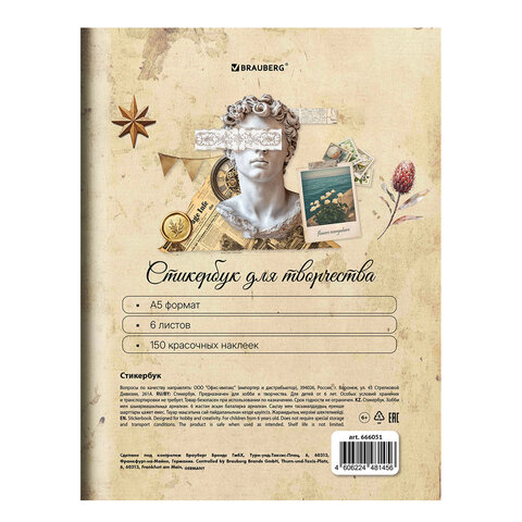 Стикербук для скрапбукинга А5, 6 листов, 150 цветных стикеров, на скрепке, BRAUBERG, "Эстетика", 666051