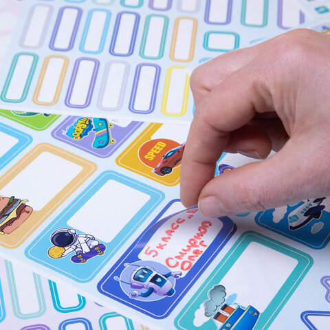 Наклейки бумажные для маркировки ПОДПИШУ ВСЕ для мальчиков, НАБОР 4 листа А5, 113 наклеек, HATBER