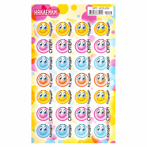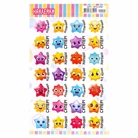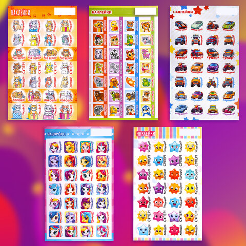 Наклейки бумажные поощрительные, АССОРТИ 280 наклеек, 16х10 см, глиттер, ЮНЛАНДИЯ, 665521