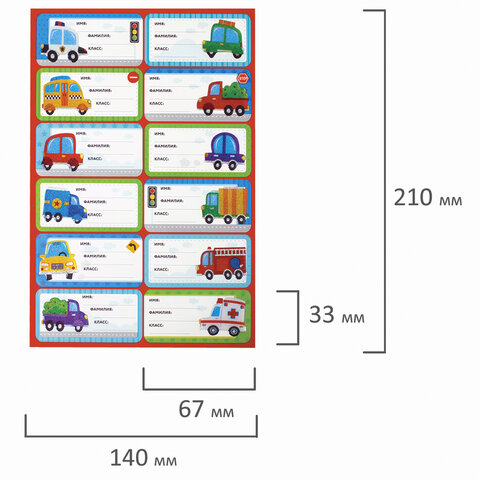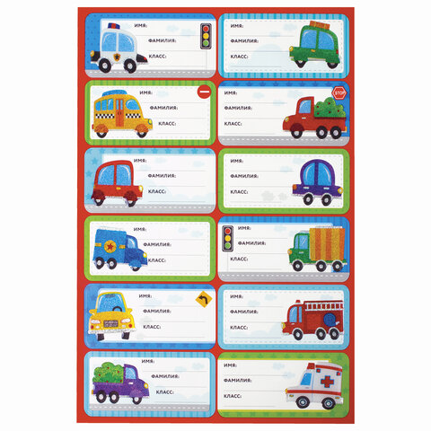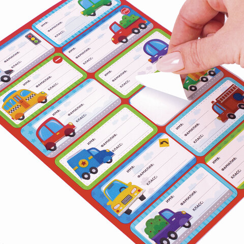 Наклейки для маркировки школьных принадлежностей "Машинки", 12 штук, 14х21 см, ЮНЛАНДИЯ, 662712