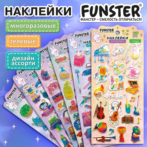 Гелевые наклейки FUNSTER - идеальный выбор для творчества! Эти очаровательные наклейки с яркими дизайнами поднимут настроение и добавят красок в повседневность.
