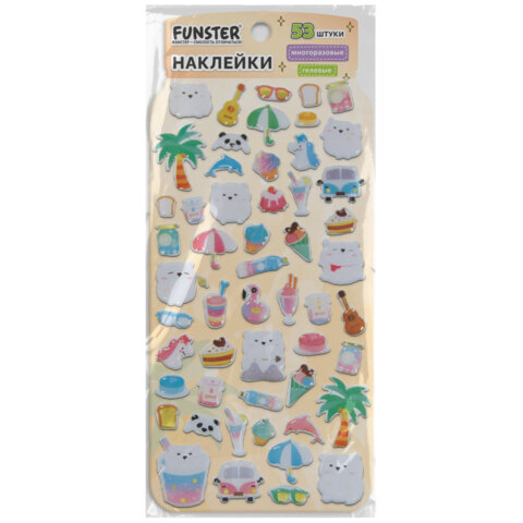 Гелевые наклейки FUNSTER - идеальный выбор для творчества! Эти очаровательные наклейки в ярких дизайнах ассорти поднимут настроение и добавят красок в повседневность.