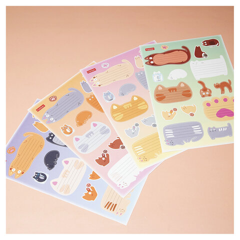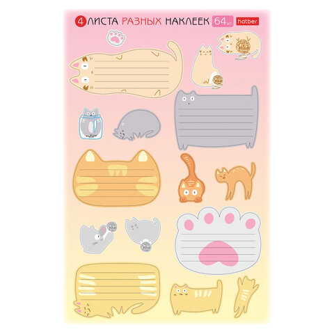 Наклейки бумажные для маркировки КОТОВАСИЯ, НАБОР 4 листа, 64 наклейки, HATBER, 4Н5н