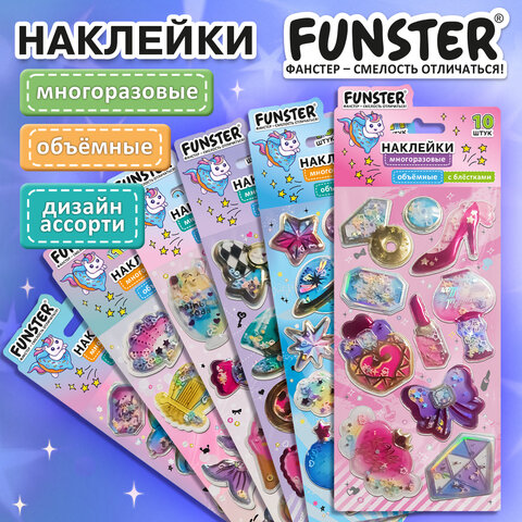 Объёмные наклейки FUNSTER - идеальный выбор для творчества! Эти очаровательные наклейки в ярких дизайнах ассорти поднимут настроение и добавят красок в повседневность.