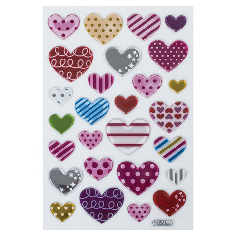 Наклейки объемные "Сердца", многоразовые, 10х15 см, ЮНЛАНДИЯ, 661832