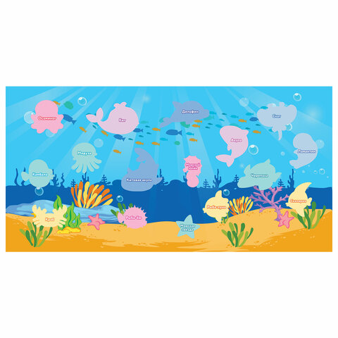Наклейки обучающие тематические из EVA "Морские обитатели", 20х40 см, многоразовые, ЮНЛАНДИЯ, 663771