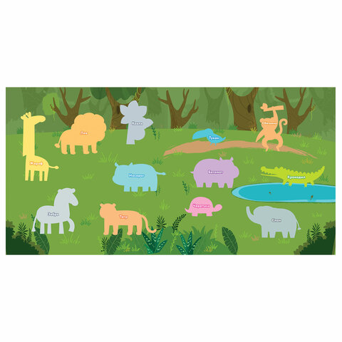 Наклейки обучающие тематические из EVA "Животные Африки", 20х40 см, многоразовые, ЮНЛАНДИЯ, 663770