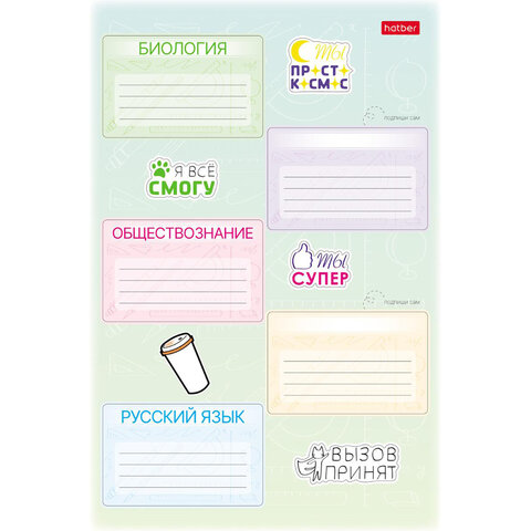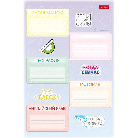 Мелованные наклейки с самоклеящейся основой предназначены для персонализации школьных пособий, учебников, папок и тетрадей.