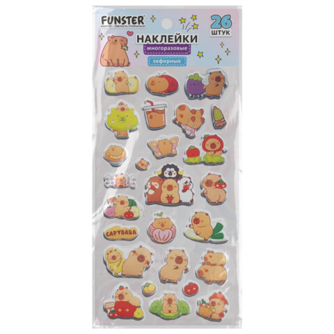 Наклейки зефирные "Капибары", 18х9,5 см, ассорти 6 видов, FUNSTER (ФАНСТЕР), 666093