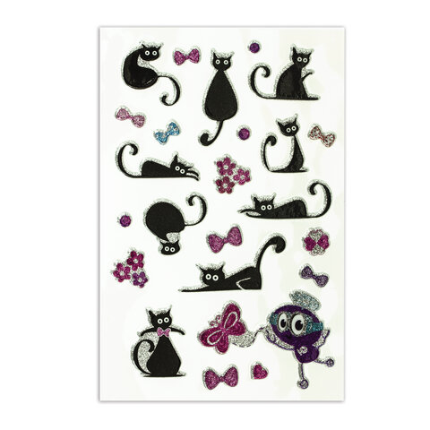 Наклейки зефирные "Кошки", многоразовые, с блестками, 10х15 см, ЮНЛАНДИЯ, 661825