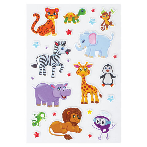 Наклейки зефирные "Сафари", многоразовые, 10х15 см, ЮНЛАНДИЯ, 661802