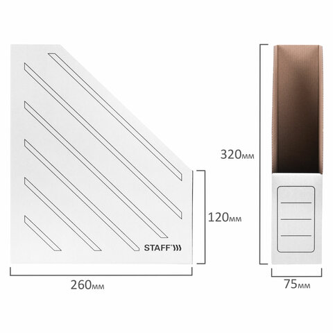Лоток вертикальный для бумаг (260х320 мм), 75 мм, до 700 листов, микрогофрокартон, STAFF, БЕЛЫЙ, 128881