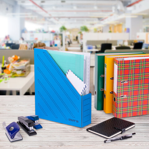 Лоток вертикальный для бумаг (260х320 мм), 75 мм, до 700 листов, микрогофрокартон, STAFF, СИНИЙ, 128882