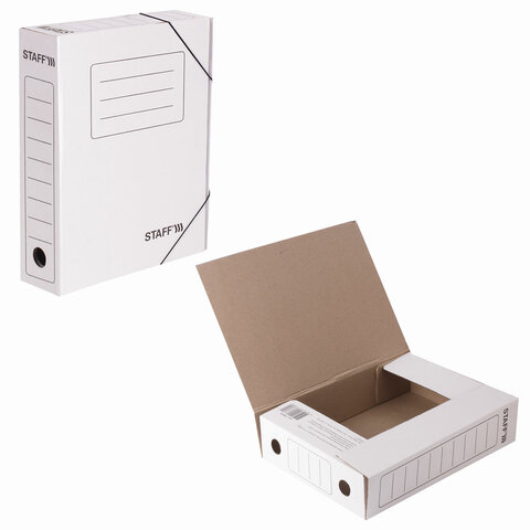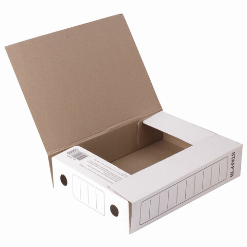 Папка архивная с резинкой А4 (325х250 мм), 75 мм, до 700 листов, микрогофрокартон, БЕЛАЯ, STAFF, 128878