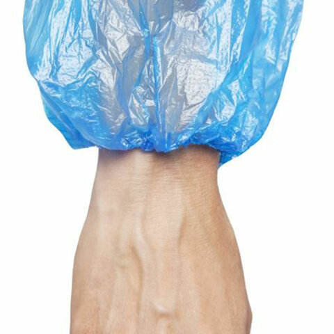 Нарукавники одноразовые КОМПЛЕКТ 100 штук (50 пар) ПЭ, 14 мкм, 3 г, 25х40 см, синие, ELEGREEN