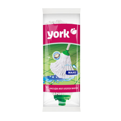 Насадка для мытья полов веревочная Макси YORK,подходит к любым рукояткам со стандартной еврорезьбой. Имеет длинные хлопковые ленты. Хорошо собирает влагу.