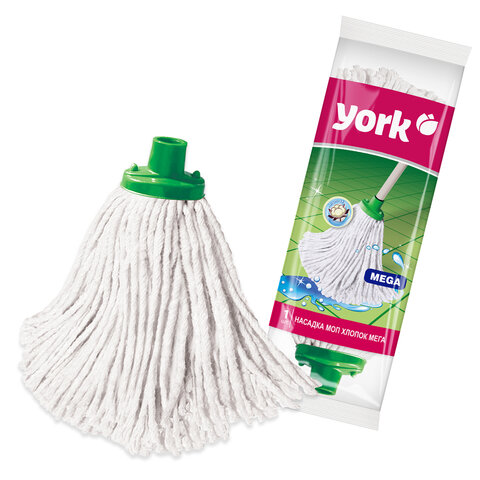 Насадка для мытья полов веревочная Мега YORK,подходит к любым рукояткам со стандартной еврорезьбой. Имеет длинные хлопковые ленты. Хорошо собирает влагу.