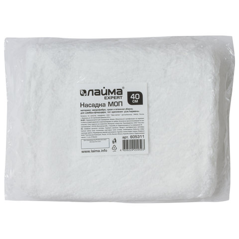 Насадка МОП плоская для швабры/держателя 40 см, уши/карманы (ТИП У/К), микрофибра, LAIMA EXPERT, 605311