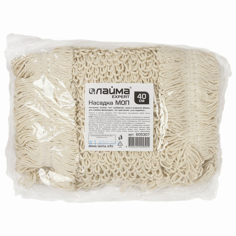 Насадка МОП плоская для швабры/держателя 40 см, уши/карманы (ТИП У/К), пробивной хлопок, LAIMA EXPERT, 605307