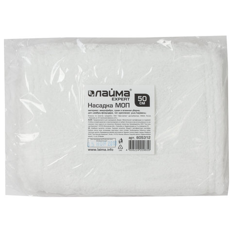 Насадка МОП плоская для швабры/держателя 50 см, уши/карманы (ТИП У/К), микрофибра, LAIMA EXPERT, 605312