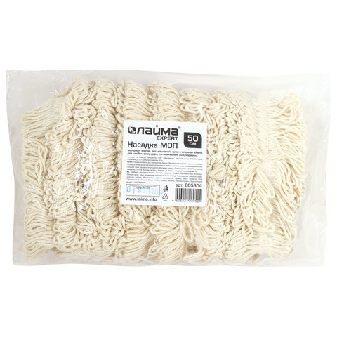 Насадка МОП плоская для швабры/держателя 50 см, уши/карманы (ТИП У/К), нашивной хлопок, LAIMA EXPERT, 605304