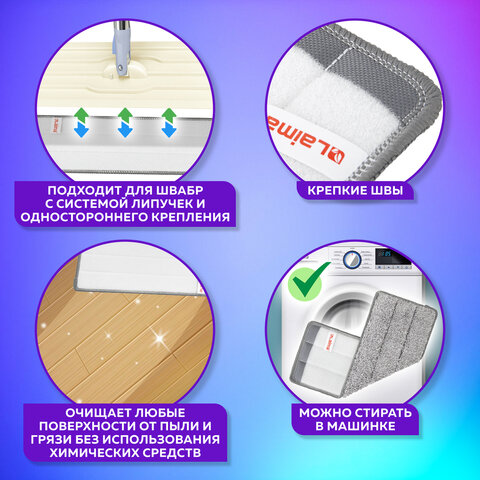Насадки МОП для швабры (кармашки с 1-й стороны) КОМПЛЕКТ 4 шт., микрофибра, 33х12,5 см, LAIMA, 608145