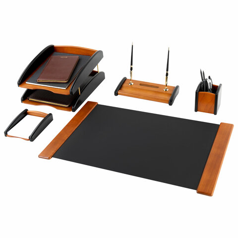 Набор настольный GALANT "Cayman" из дерева, 6 предметов, цвет "светлое дерево/чёрный", 238159