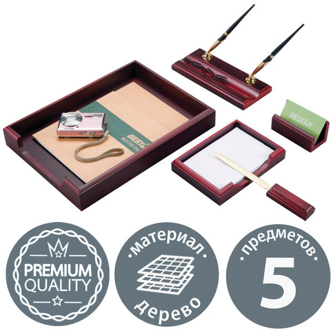 Набор подарочный настольный BESTAR "Neptun" из дерева, 5 предметов, цвет "красное дерево", 236370