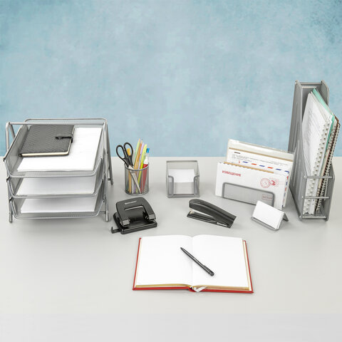 Настольный набор из металла BRAUBERG "Germanium" - это готовое решение для офиса. Позволяет содержать в порядке все письменные принадлежности и документы, а также эффективно их использовать.