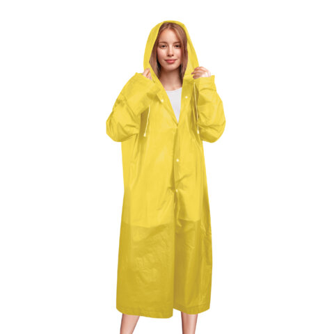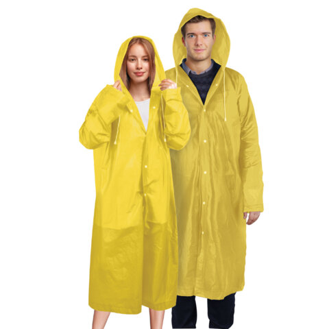 Дождевик плащ на кнопках, EVA, многоразовый прочный, чехол в комплекте, универсальный размер, желтый, SHAMAANI (ШАМААНИ), 610934