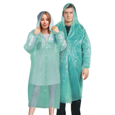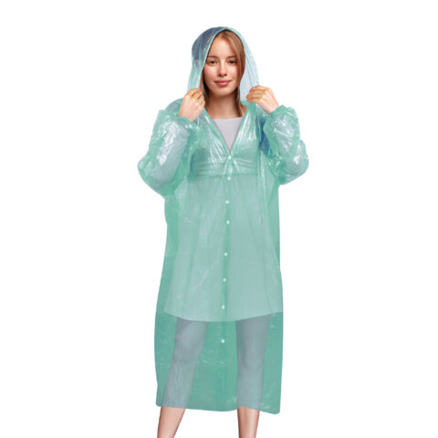 Дождевик-плащ на кнопках полиэтиленовый, универсальный размер 120х80 см, зеленый, SHAMAANI (ШАМААНИ), 610930