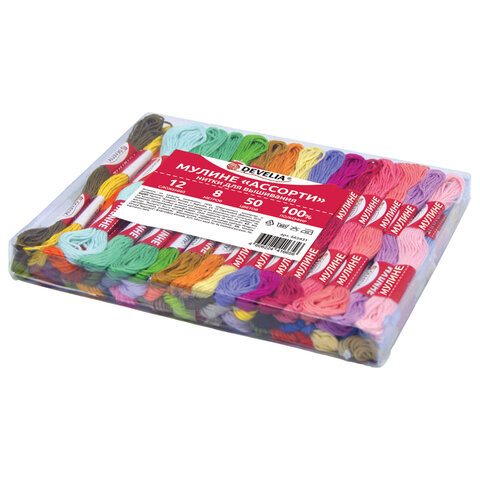 Нитки для вышивания (мулине), набор 50 цветов, 8 м, полиэфир, DEVELIA (Девелиа), 665431