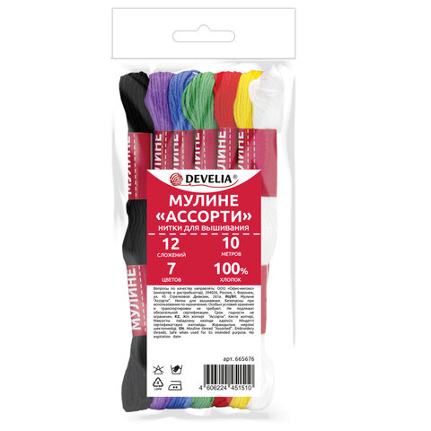 Нитки мулине DEVELIA произведены из 100% хлопка высокого качества, предназначены для разных техник вышивания и плетения. Стойкие цвета не теряют насыщенности и блеска, долго сохраняя свою декоративность.