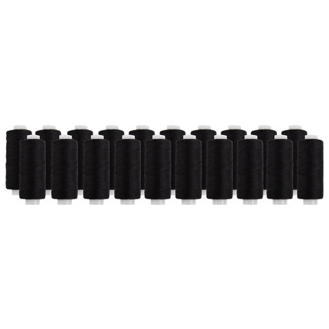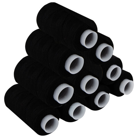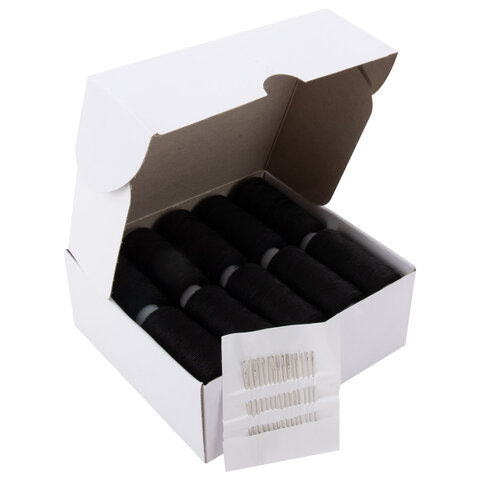 Нитки швейные 40 ЛШ, 200 м, полиэстер, НАБОР 20 шт., черные, в ПОДАРОК иглы, DEVELIA (Девелиа), 609622