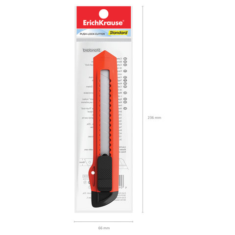 Нож канцелярский 18 мм ERICH KRAUSE "Standard", автофиксатор, корпус ассорти, подвес, 19145