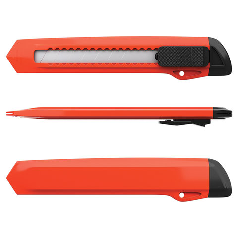 Большой канцелярский нож в удобном пластиковом корпусе с отверстием для подвеса. Удобная ручка ножа обеспечивает комфортное использование с максимальной безопасностью. Поставляется в нескольких вариантах цвета (без возможности выбора).