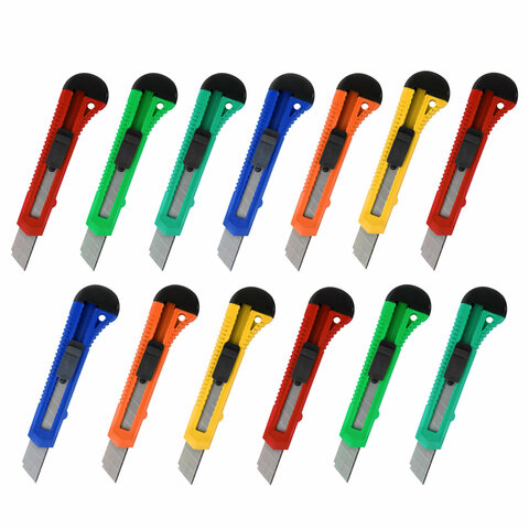 Нож канцелярский 18 мм КОМПЛЕКТ "10 шт. + 3 шт. В ПОДАРОК", фиксатор, STAFF EVERYDAY, 238771