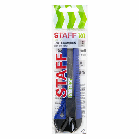 Нож канцелярский 18 мм STAFF EVERYDAY, фиксатор, матовый корпус ассорти, упаковка с подвесом, 238179