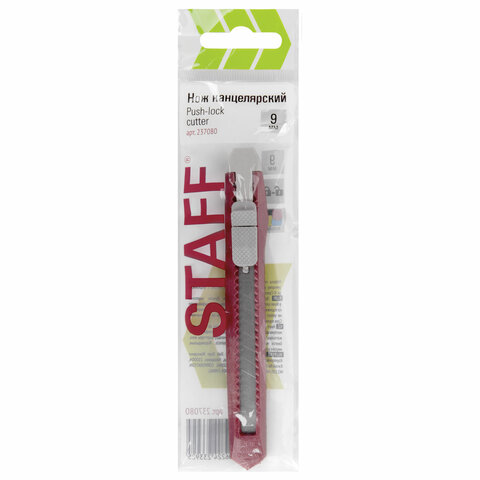 Нож канцелярский 9 мм STAFF "Basic Economy", фиксатор, клип, корпус ассорти, 237080